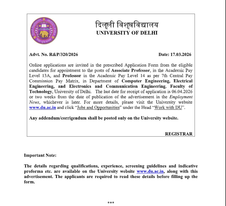 Engineering, and Electronics and Communication Engineering, Faculty of Technology, University of Delhi:-